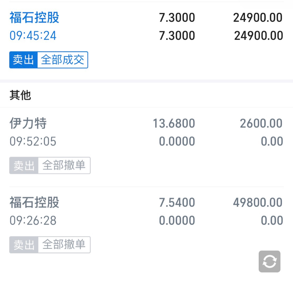 今天觉得能上7.54,9:26挂了7.54,盘中冲到7.30 害怕他又A了,全卖了,哎没有坚持自己的初心挂单