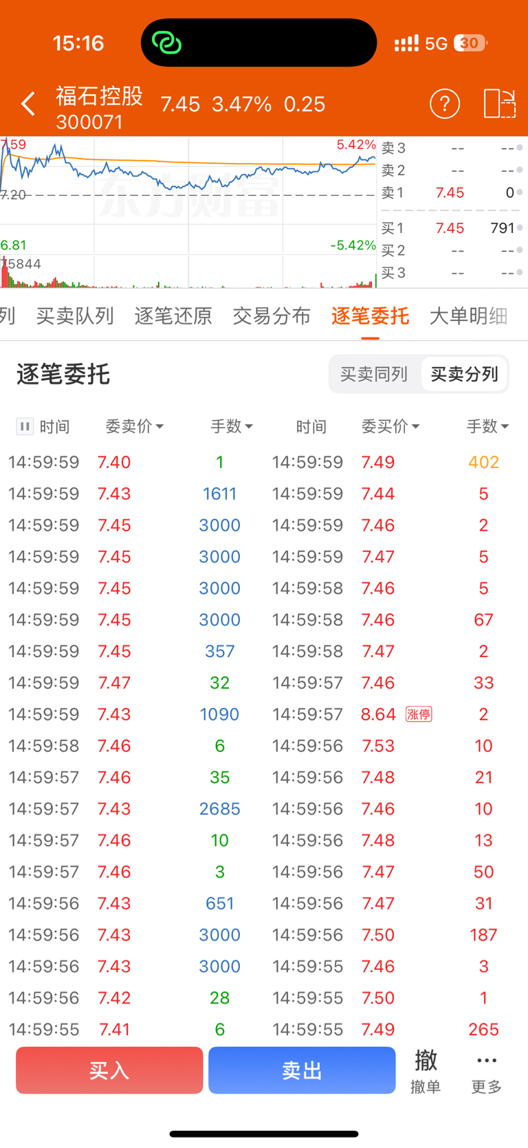 $福石控股(SZ300071)$ 大资金出逃,明天危险!!!