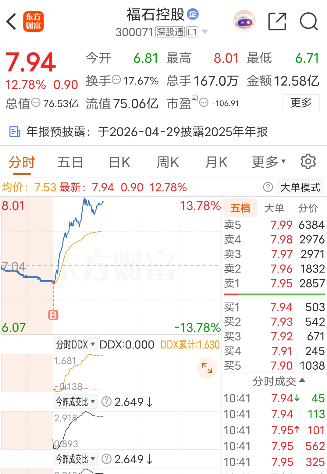 $福石控股(SZ300071)$ 买了,但是买少了