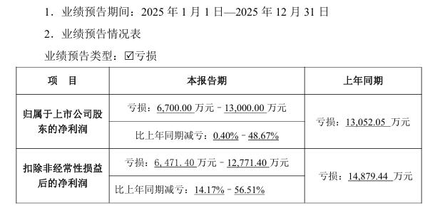 业绩方面,福石控股公告,预计2025年度归属于上市公司股东的净利润为亏损6700万—1.3亿元,上年同期亏损1.31亿元,比上年同期减亏0.40%—48.67%。