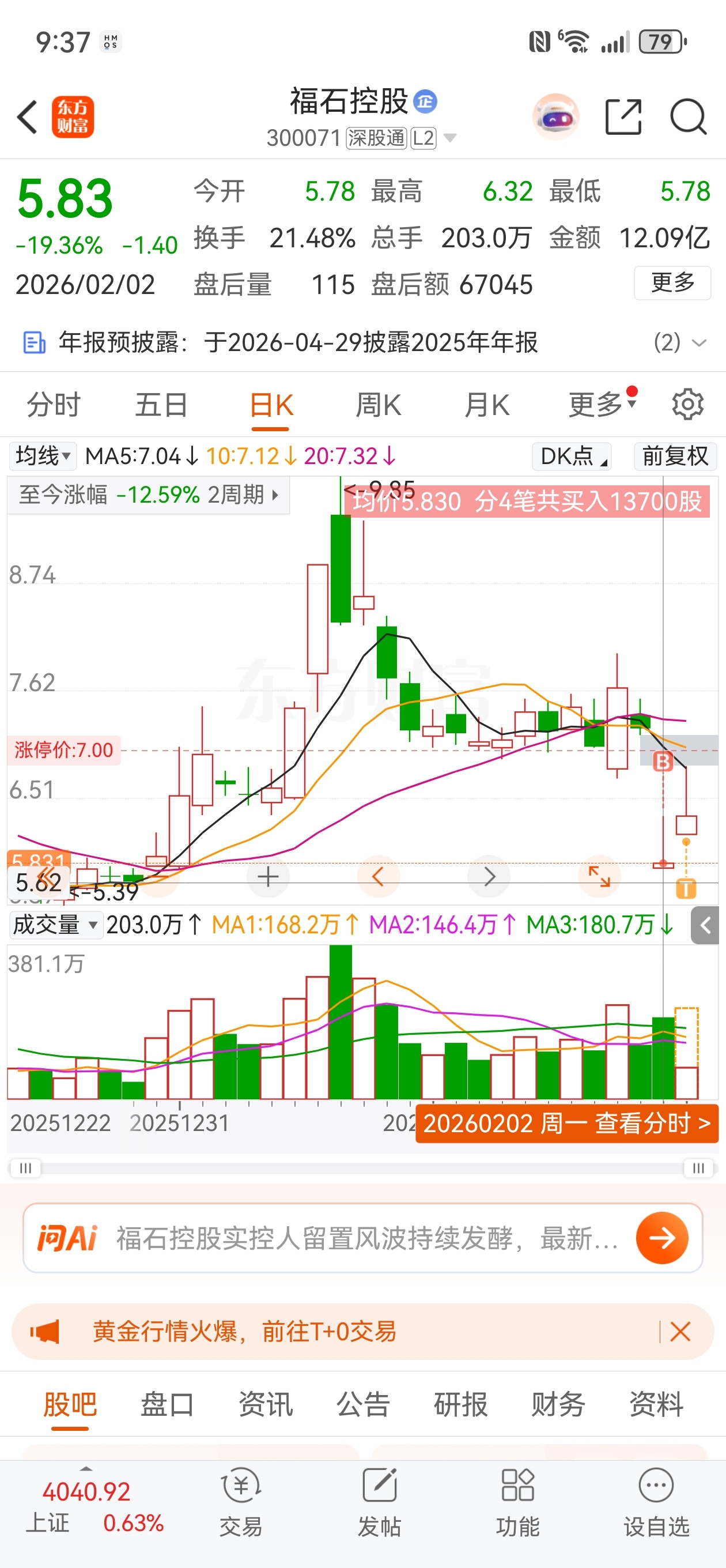 $福石控股(SZ300071)$