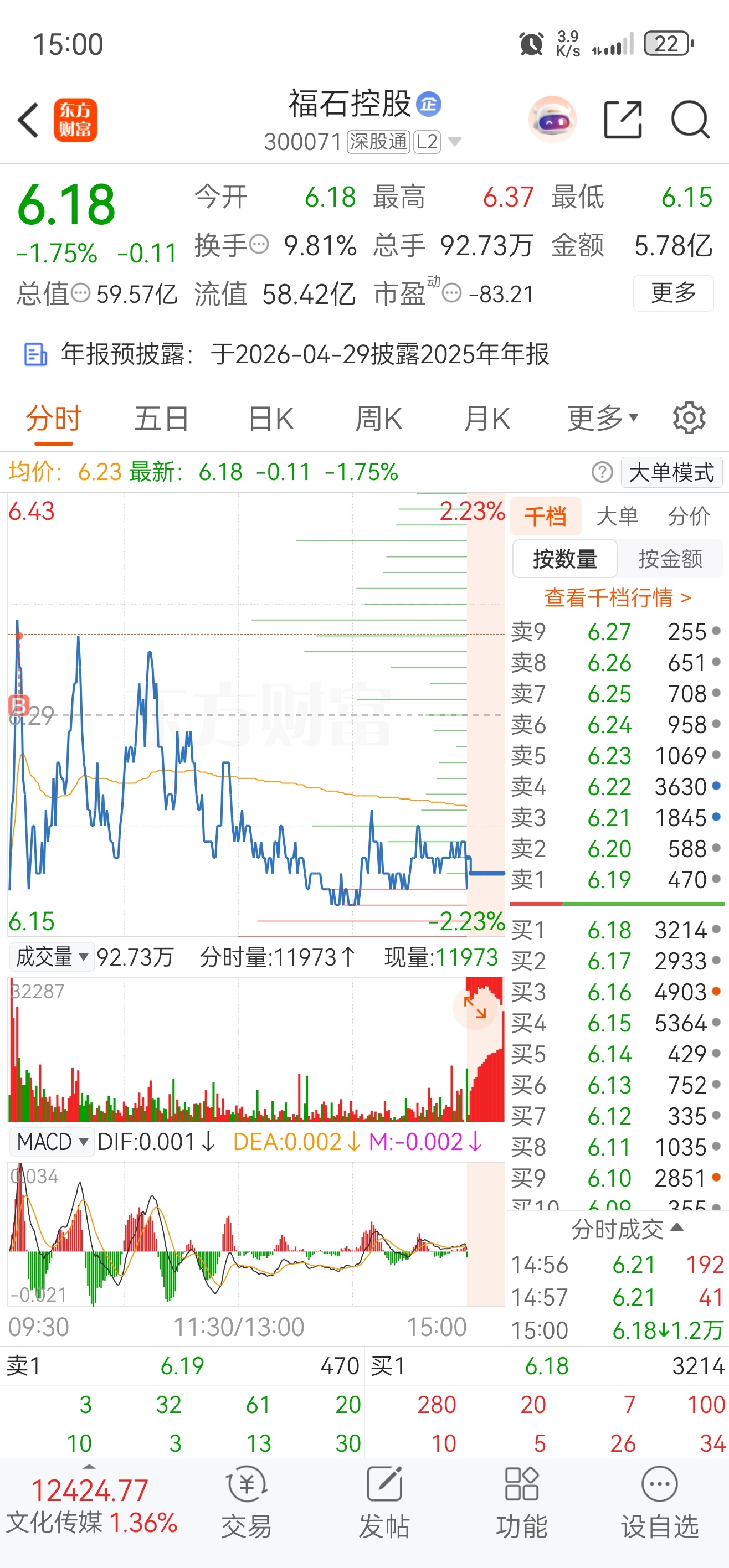 $福石控股(SZ300071)$ 亏麻了,买到最高点。