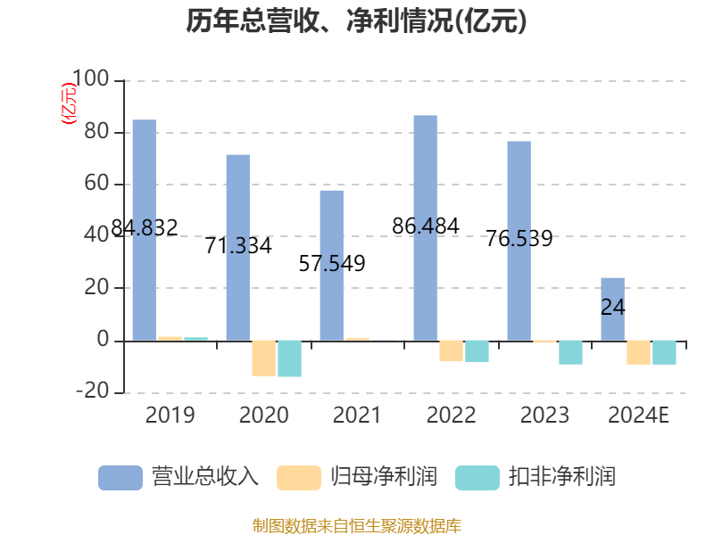 中证智能财讯海新能科(300072)1月24日晚间披露2024年度业绩预告,预计2024年实现营业收入20亿元至28亿元;归母净利润亏损7.7亿元至11亿元,上年同期亏损8415.45万元;扣非净利润亏损7.7亿元至11亿元,上年同期亏损9.29亿元。以1月24日收盘价计算,海新能科目前市盈率(TTM)约为-6.69倍至-9.55倍,市净率(LF)约1.17倍,市销率(TTM)约3.06倍。