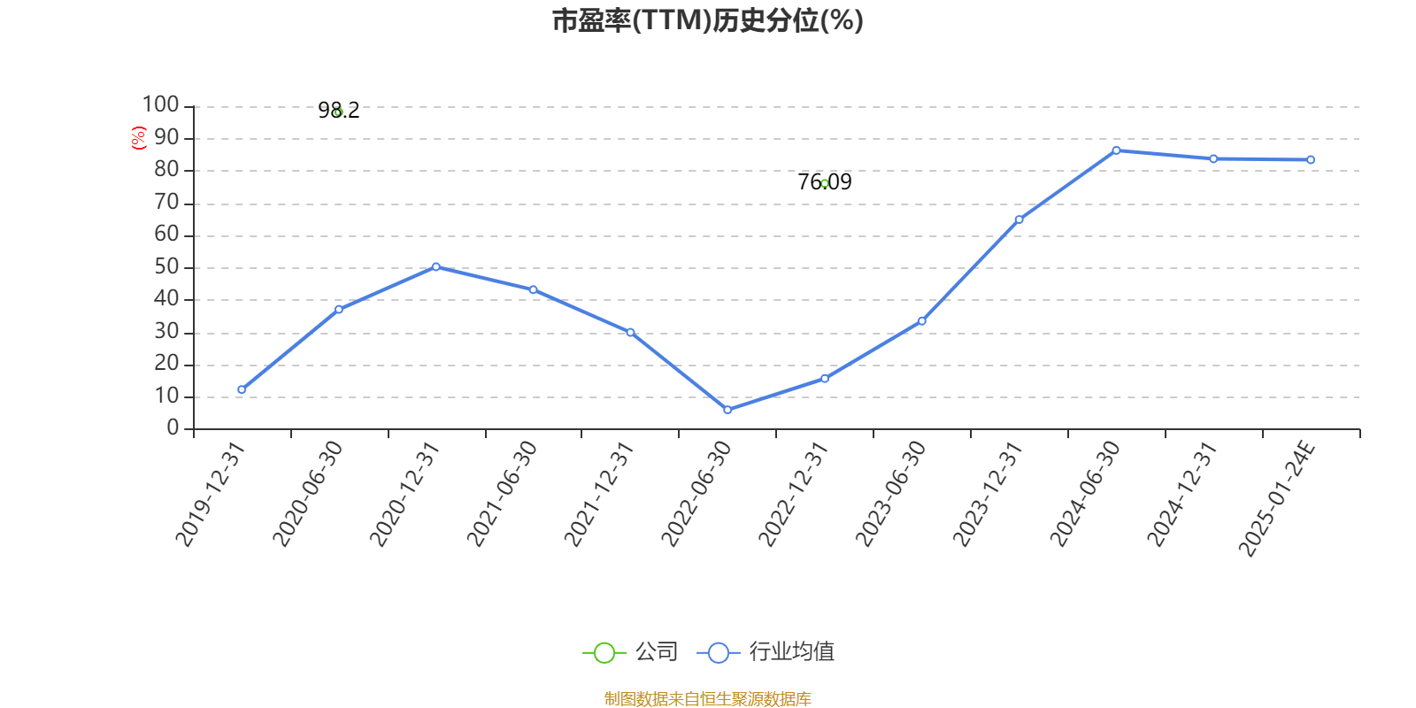 以本次披露业绩预告均值计算,公司近年市盈率(TTM)图如下所示: