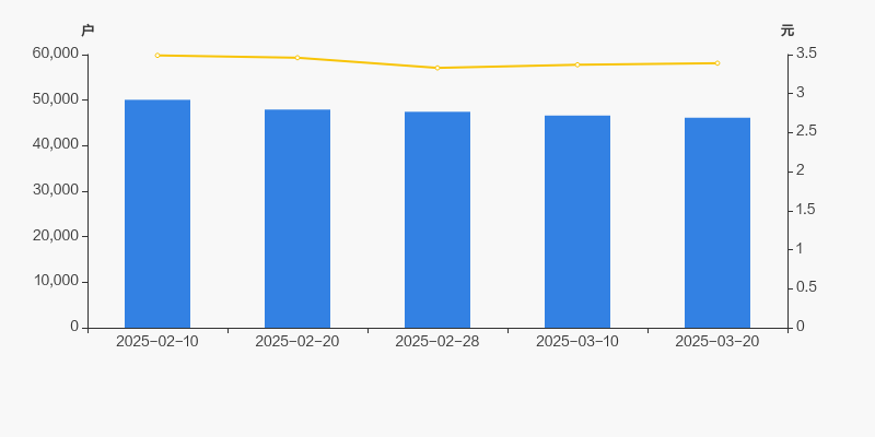 自2025年2月10日以来,公司股东户数连续4期下降,截至目前减幅为7.86%。2025年2月10日至2025年3月20日区间股价下降2.87%。