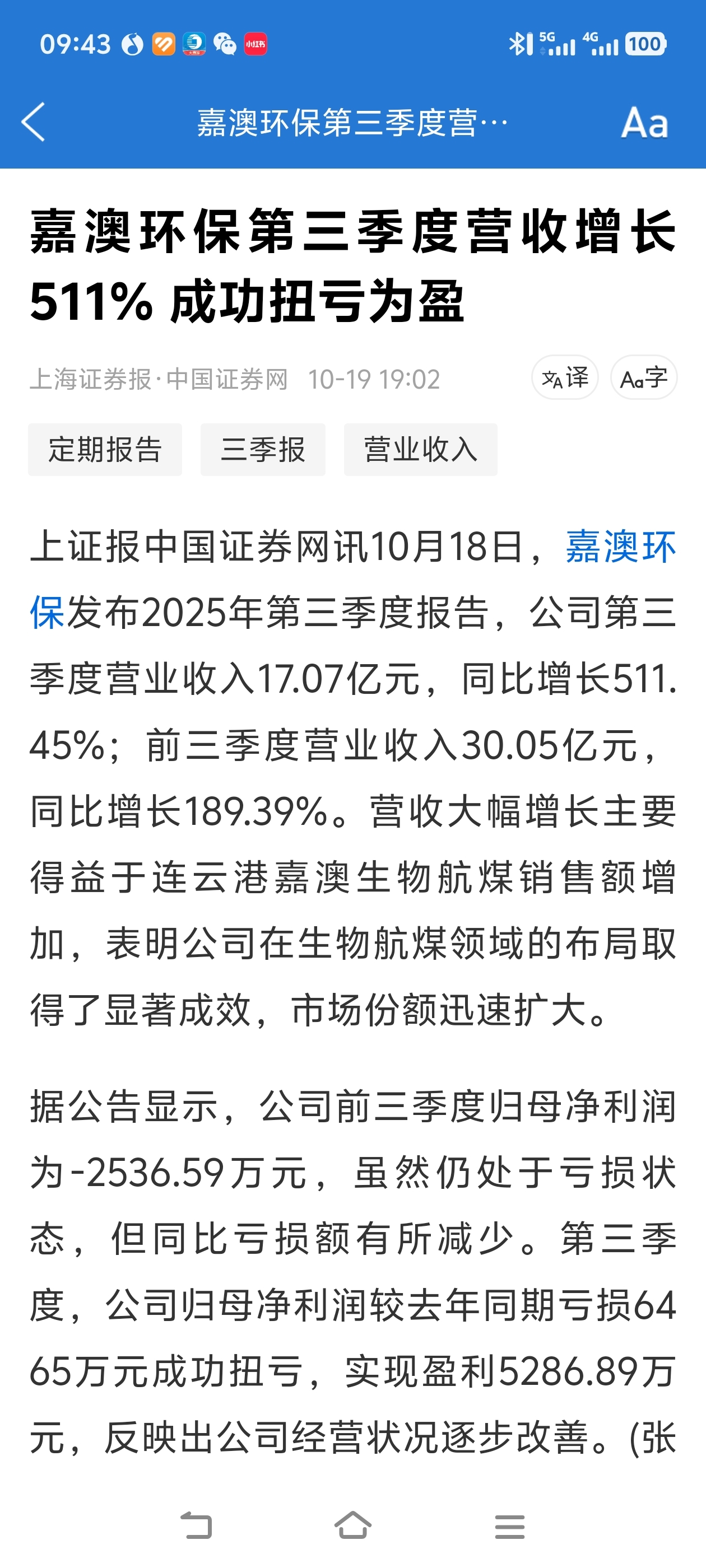 嘉澳环保马上过100元