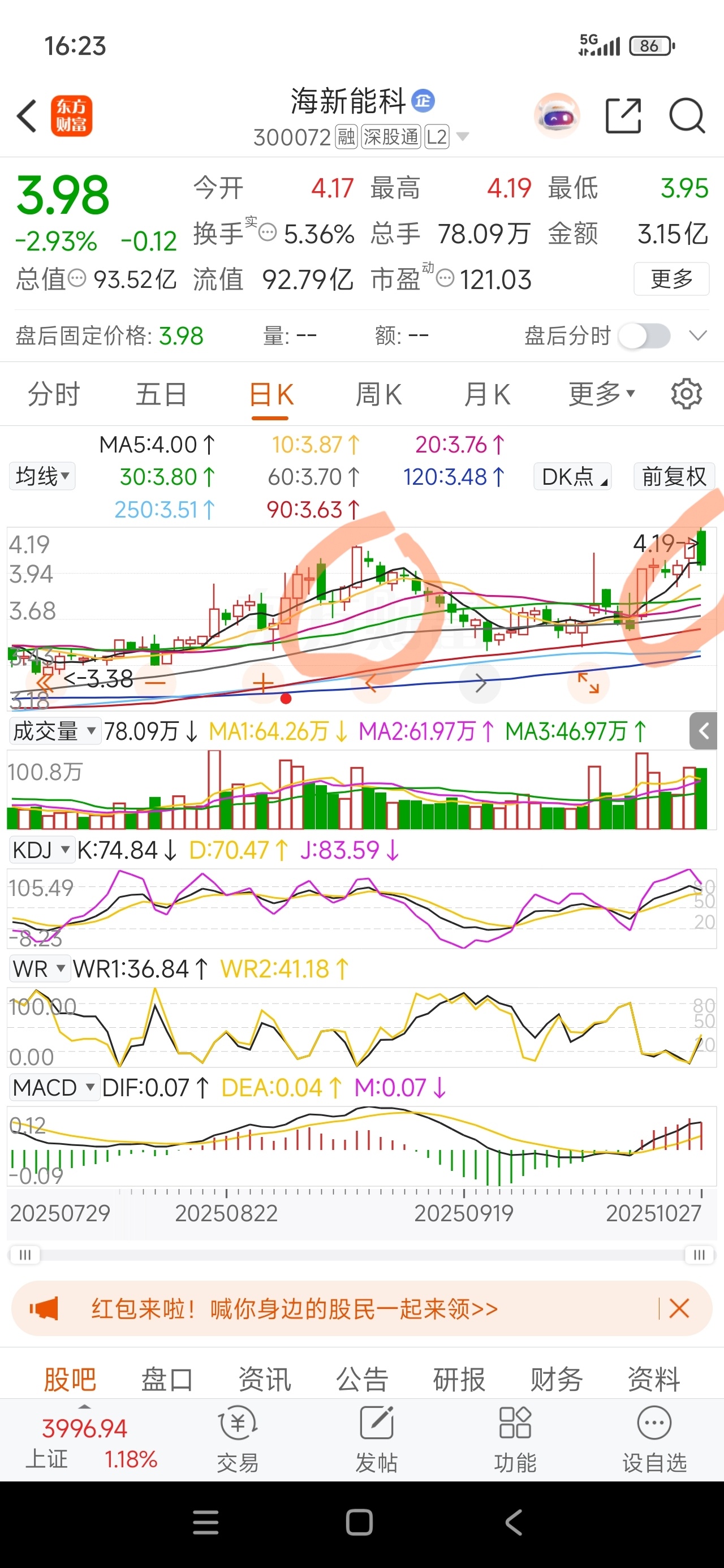 $海新能科(SZ300072)$ 这会不会是双顶?今天走的像乌云盖顶。