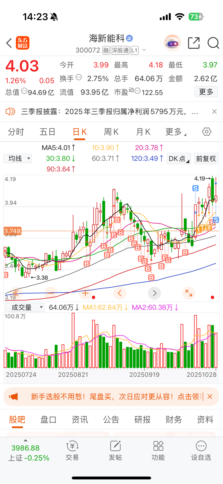 $海新能科(SZ300072)$
