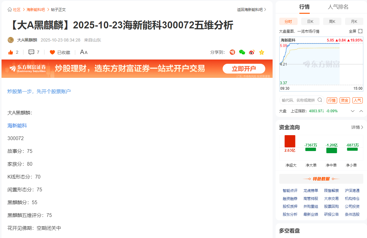 【大A黑麒麟】2025-11-07海新能科300072五维分析!
