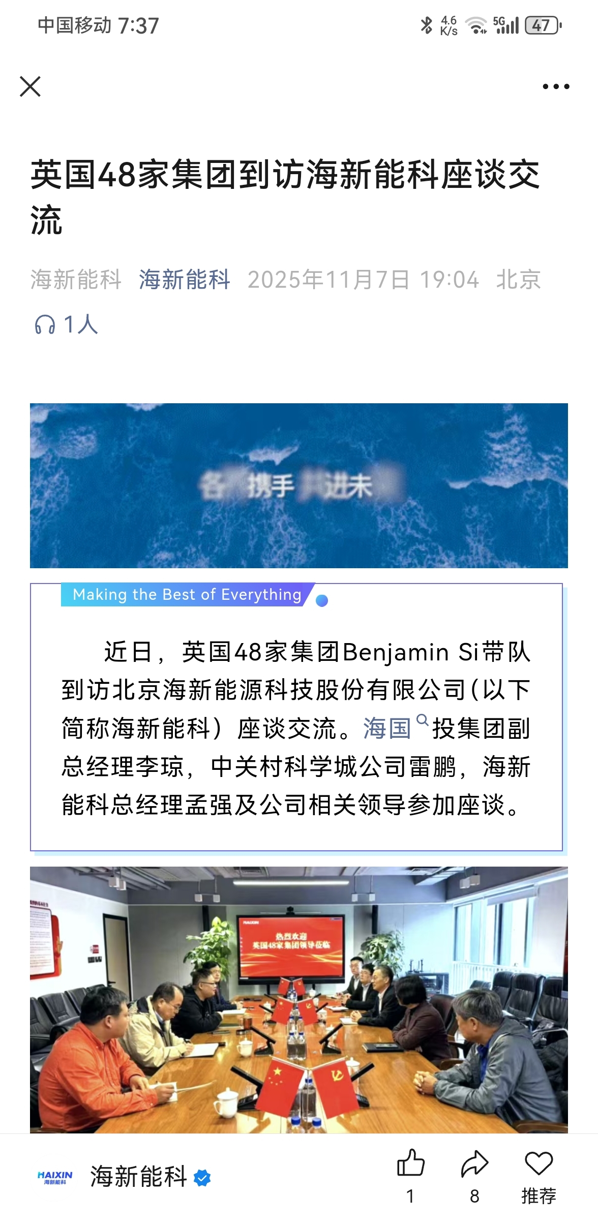 $海新能科(SZ300072)$ 这个厉害
