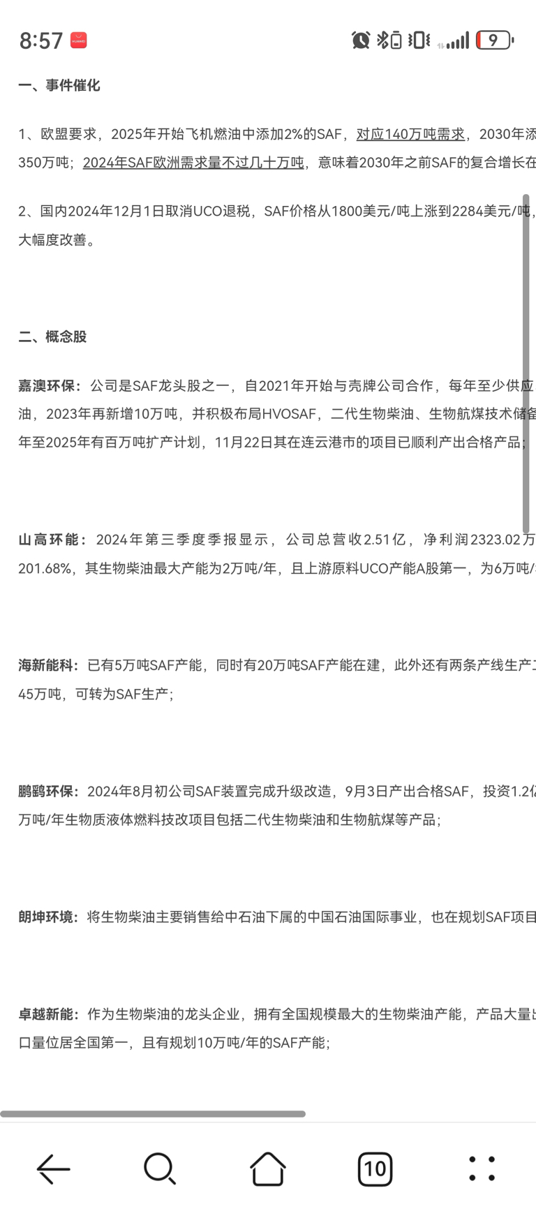$海新能科(SZ300072)$ $鹏鹞环保(SZ300664)$ $卓越新能(SH688196)$ SAF三剑客,都通过了欧盟认证,鹏鹞的预期产能最大,山高环能也是