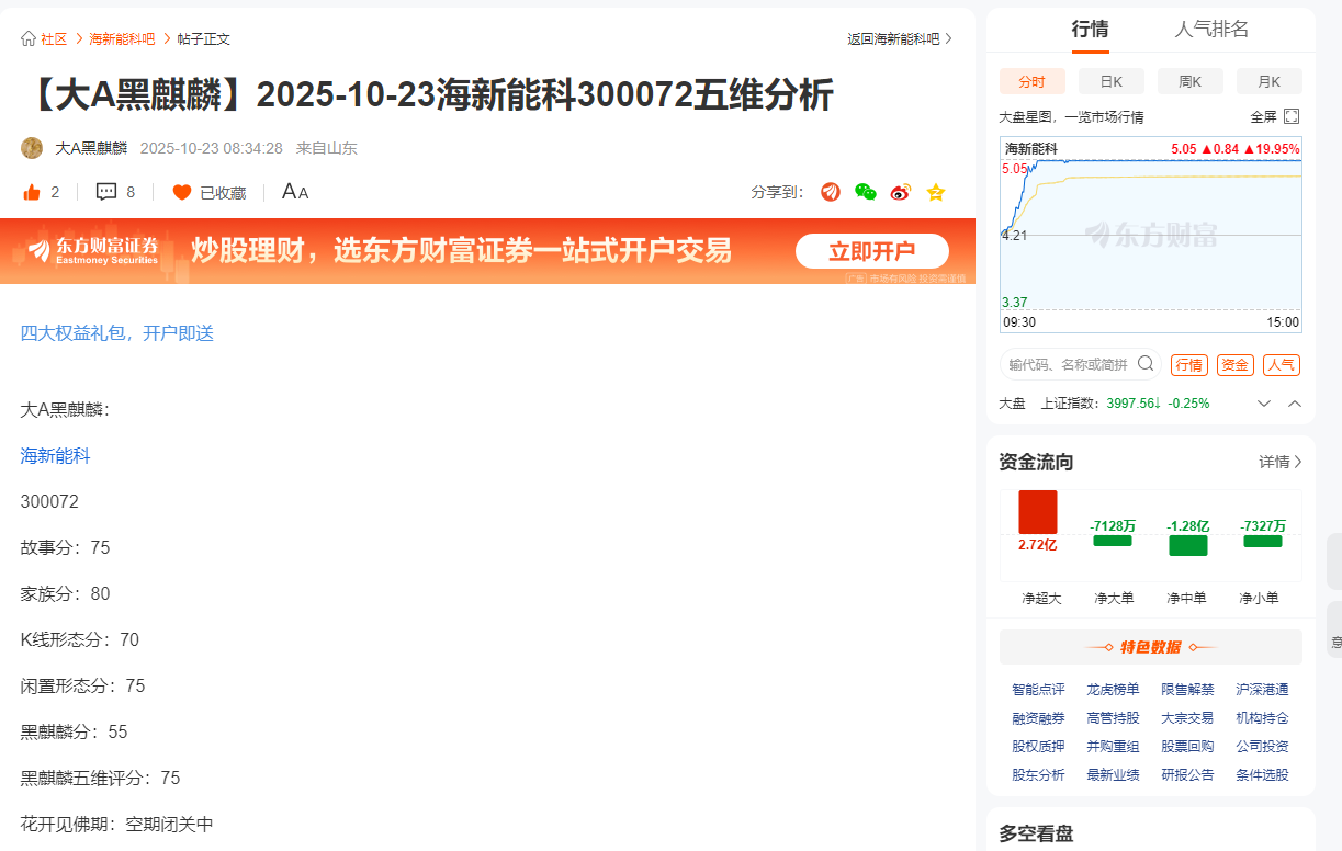 【大A黑麒麟】2025-11-08海新能科300072五维分析!