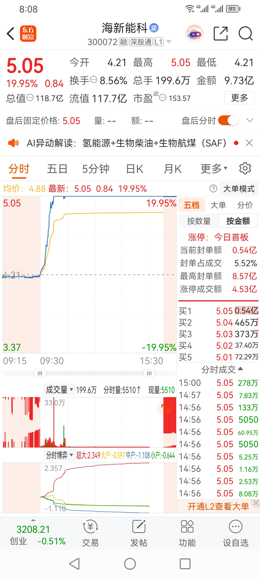 方军,5成仓位打板,设置预警,海能新科,环保。