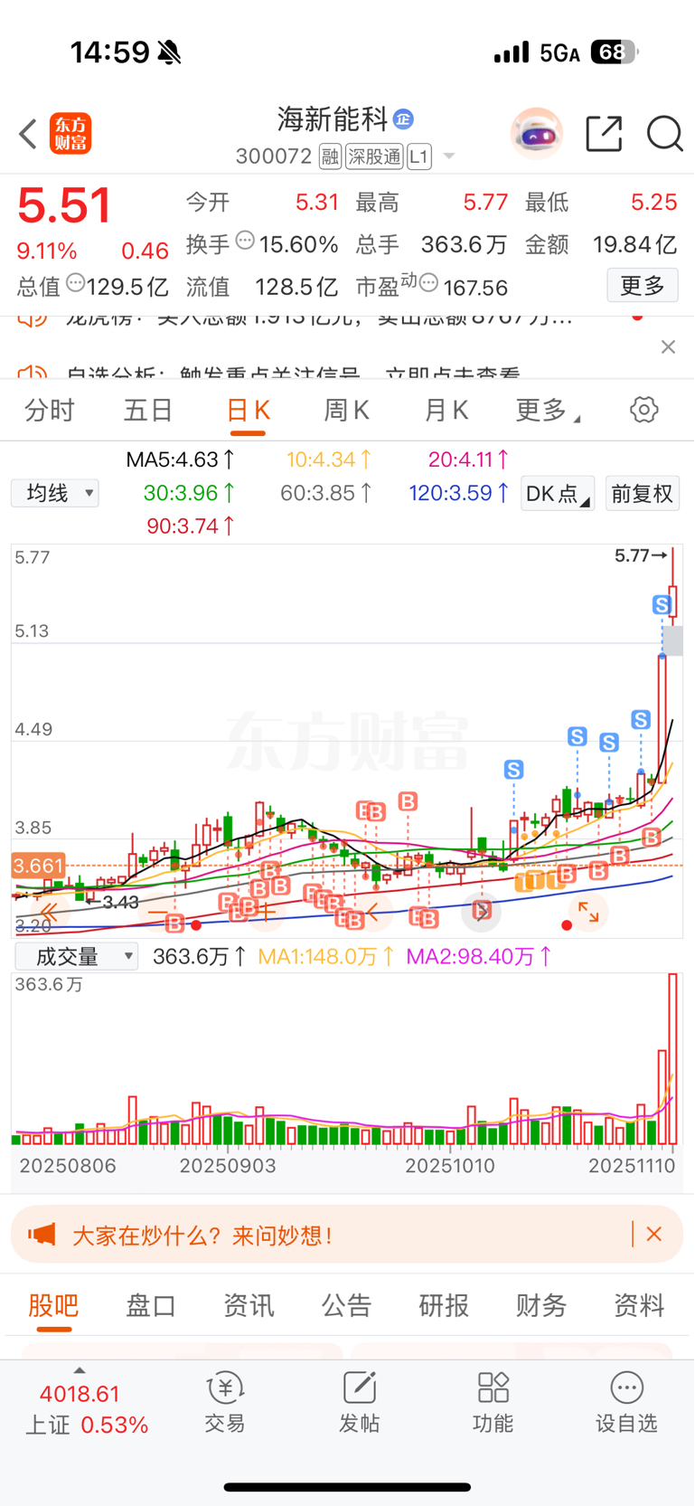 $海新能科(SZ300072)$ 还没走完 今天没动