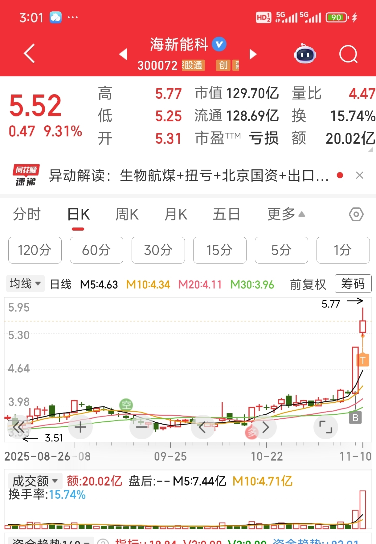 $海新能科(SZ300072)$ 卖出大部分,守住利润