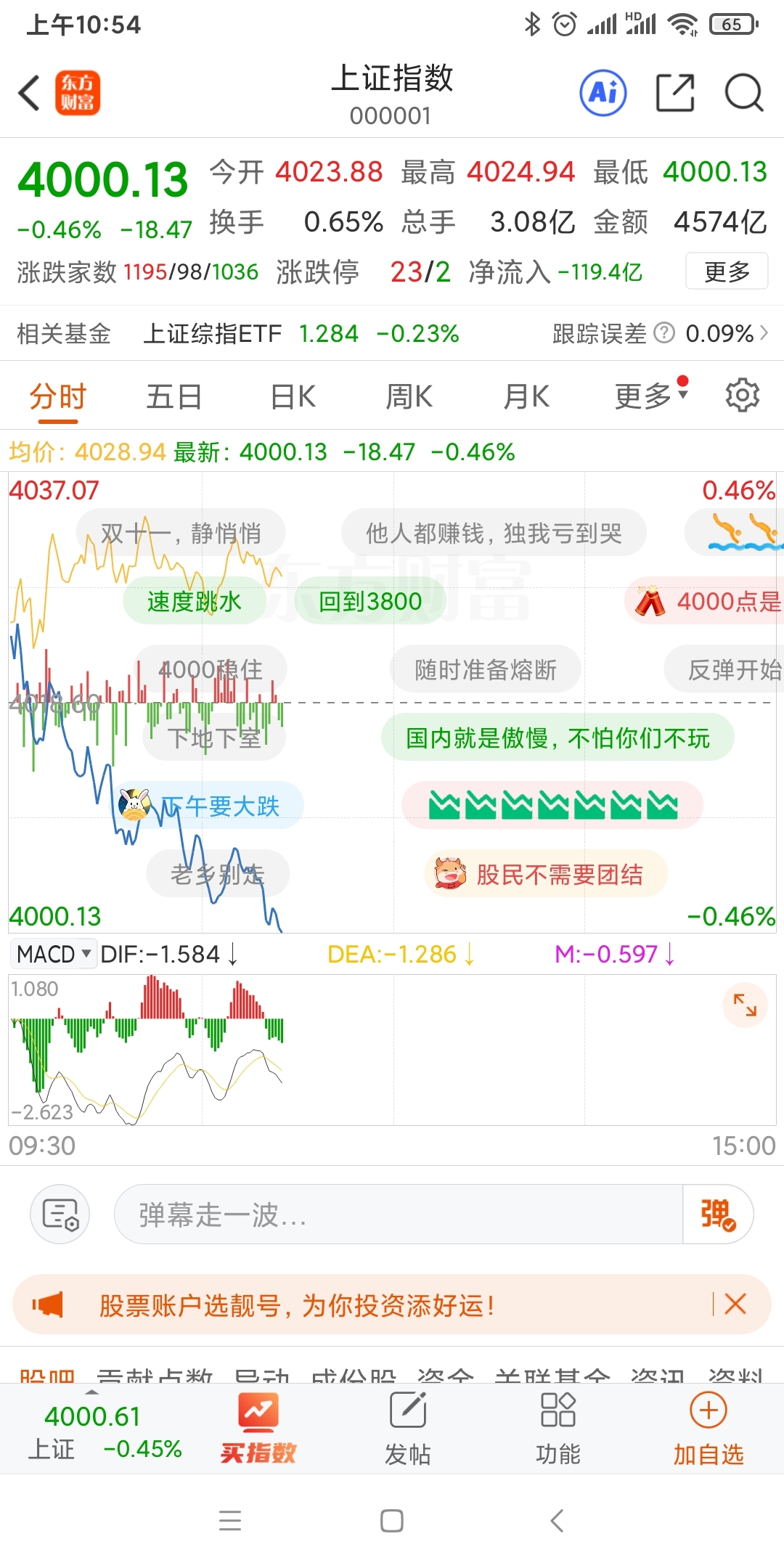 果然周一高开高走冲上去。。周二又是很多票走不了。。。高开高走,都以为往5000点