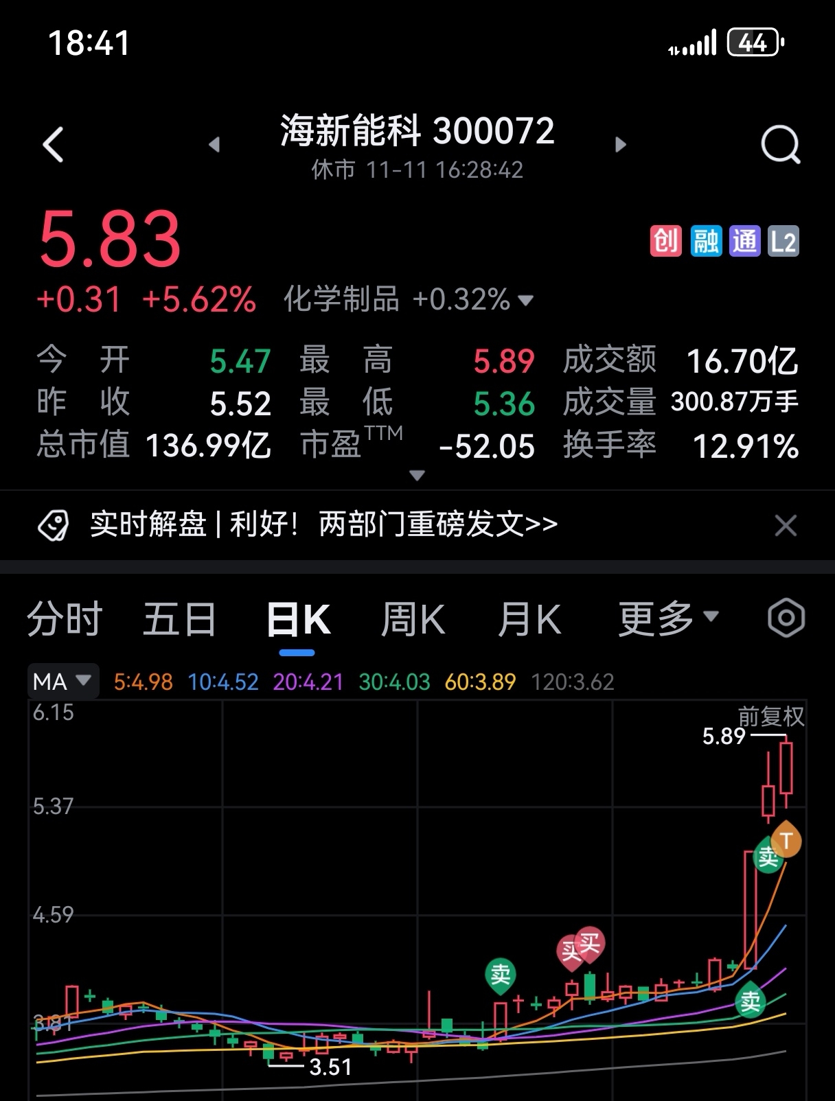$海新能科(SZ300072)$ 明天涨的话继续出!