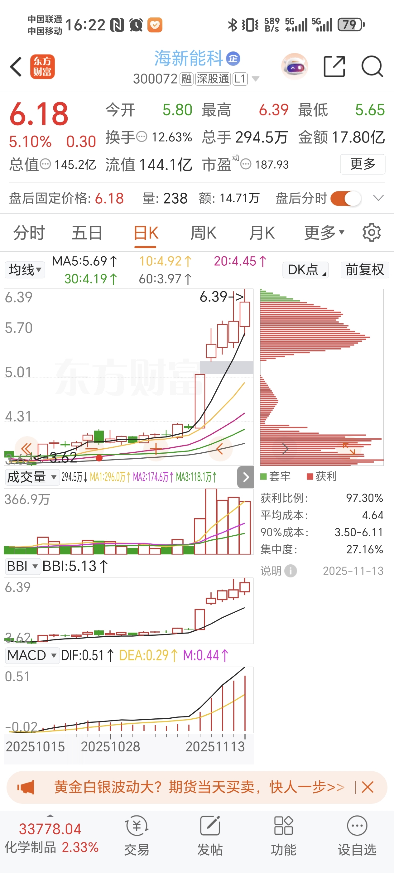 $海新能科(SZ300072)$ 6.06是第二个涨停位走了四天边拉边洗、每天换手充分这个,斜率是相当好看;周五又可以加速了!#复盘记录#