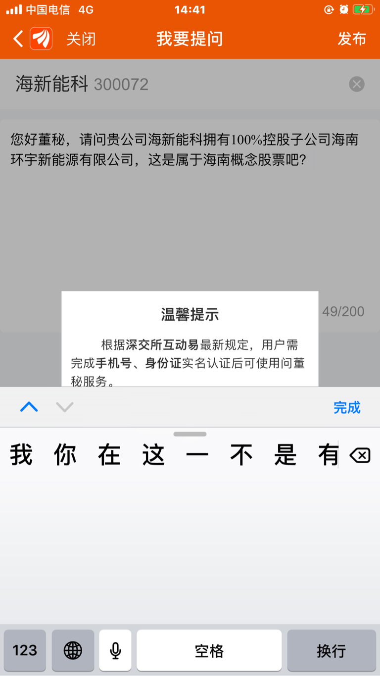 您好董秘,请问贵公司海新能科拥有100%控股子公司海南环宇新能源有限公司,这是属于海南概念股票吧?