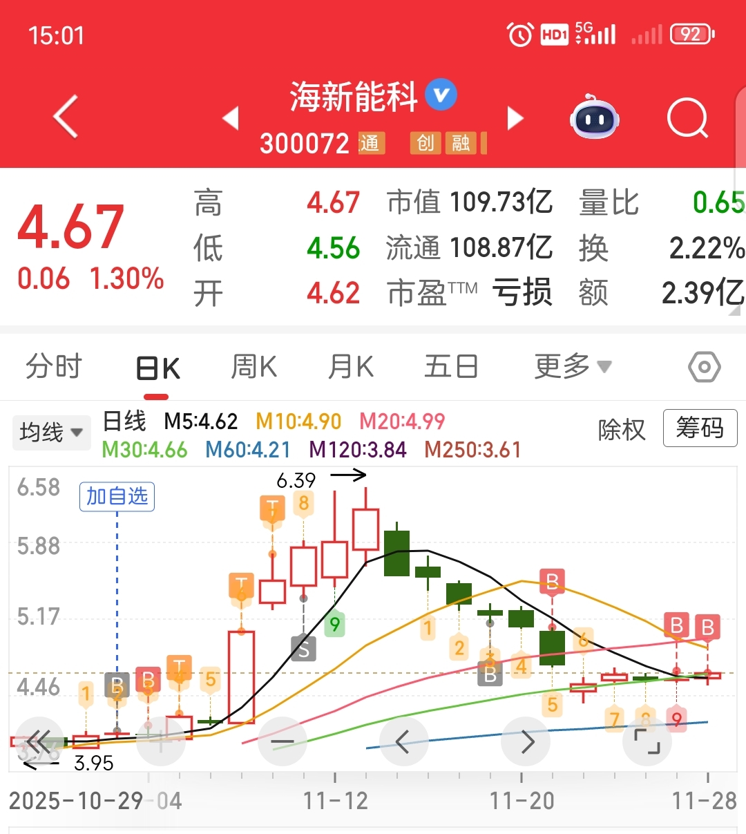 $海新能科(SZ300072)$ 尾盘集合竞价继续买入