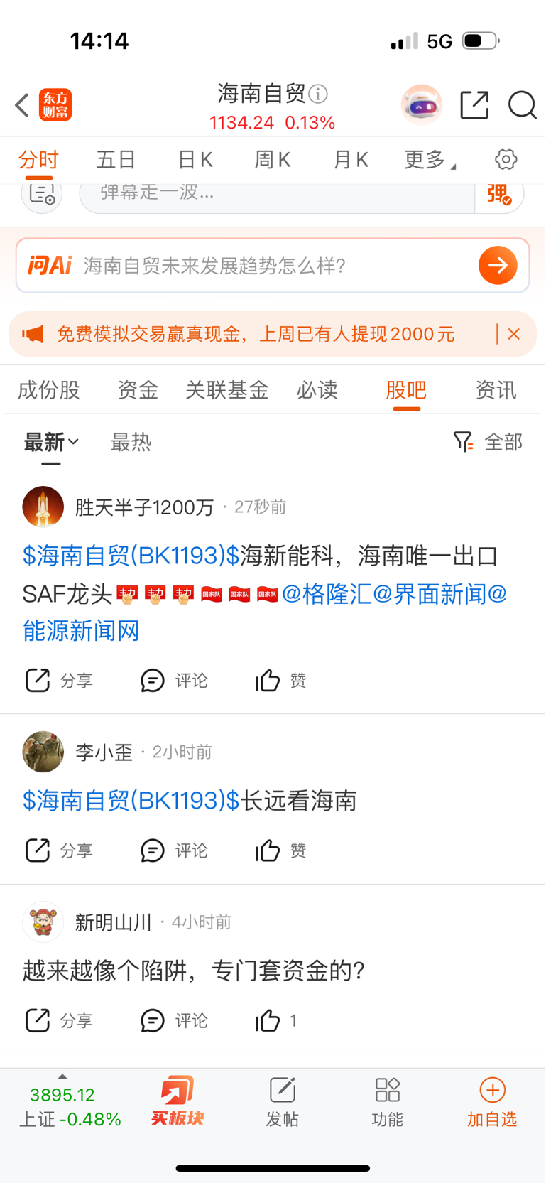 $海新能科(SZ300072)$ 海南自贸起来了,赶紧飞啊,龙头