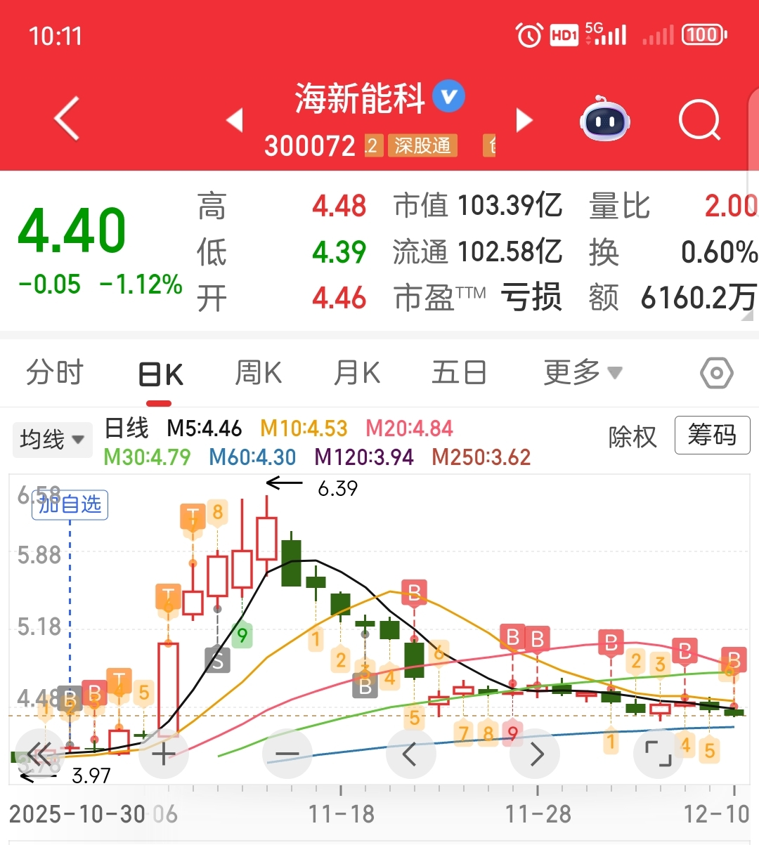 $海新能科(SZ300072)$ 一路买一路跌,股价被硬生生的买下来了
