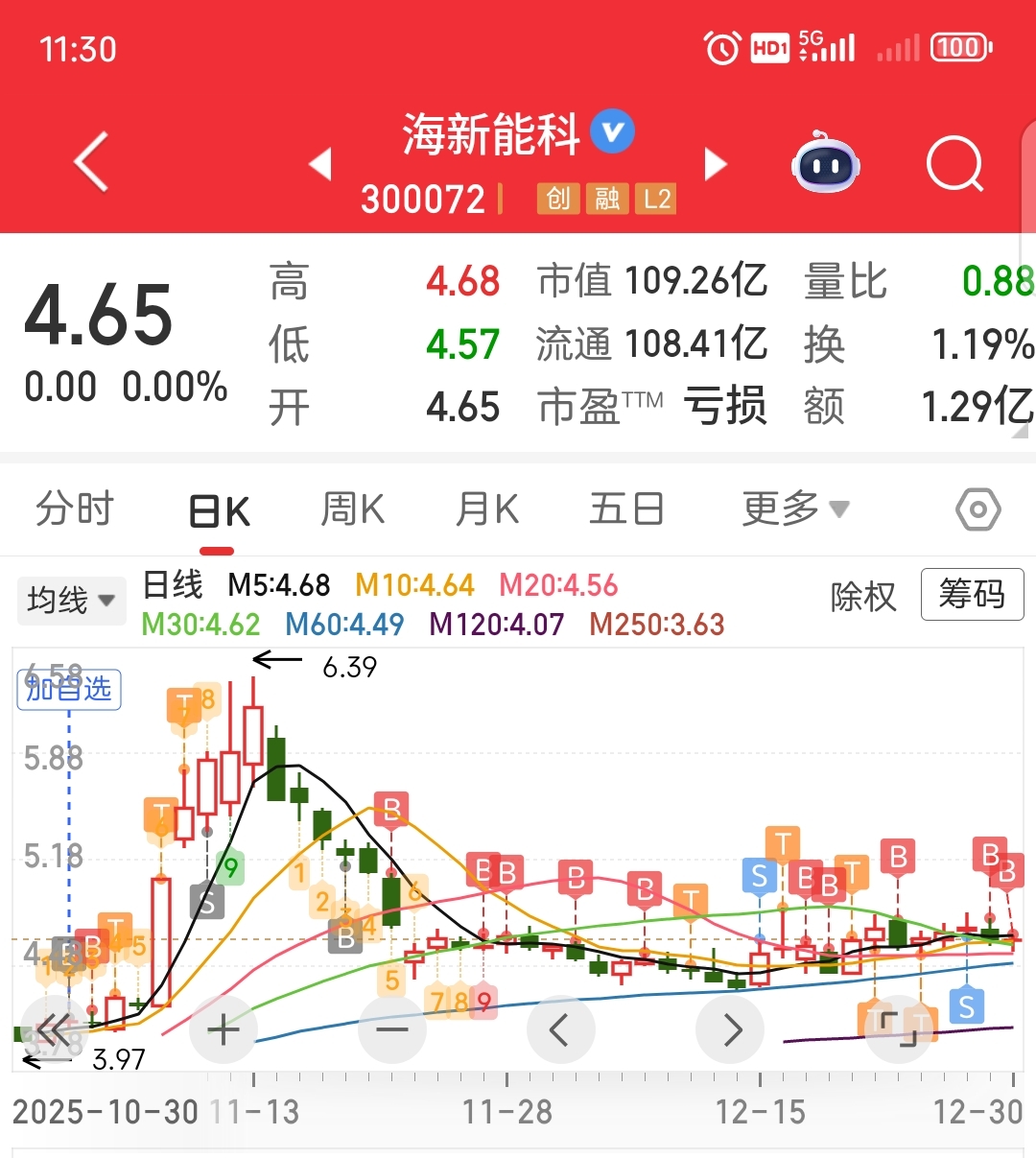 $海新能科(SZ300072)$ 耐住寂寞,绿的时候就买一点,第二次建仓以来目前成本4.49元,操作得不好,放慢一点,总会有机会的