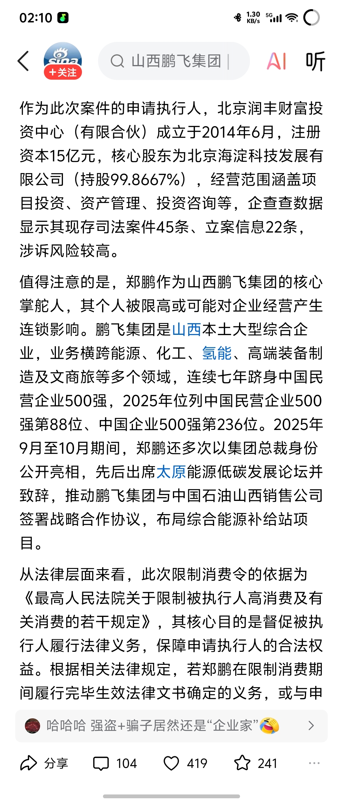 $海新能科(SZ300072)$ 孝义鹏飞