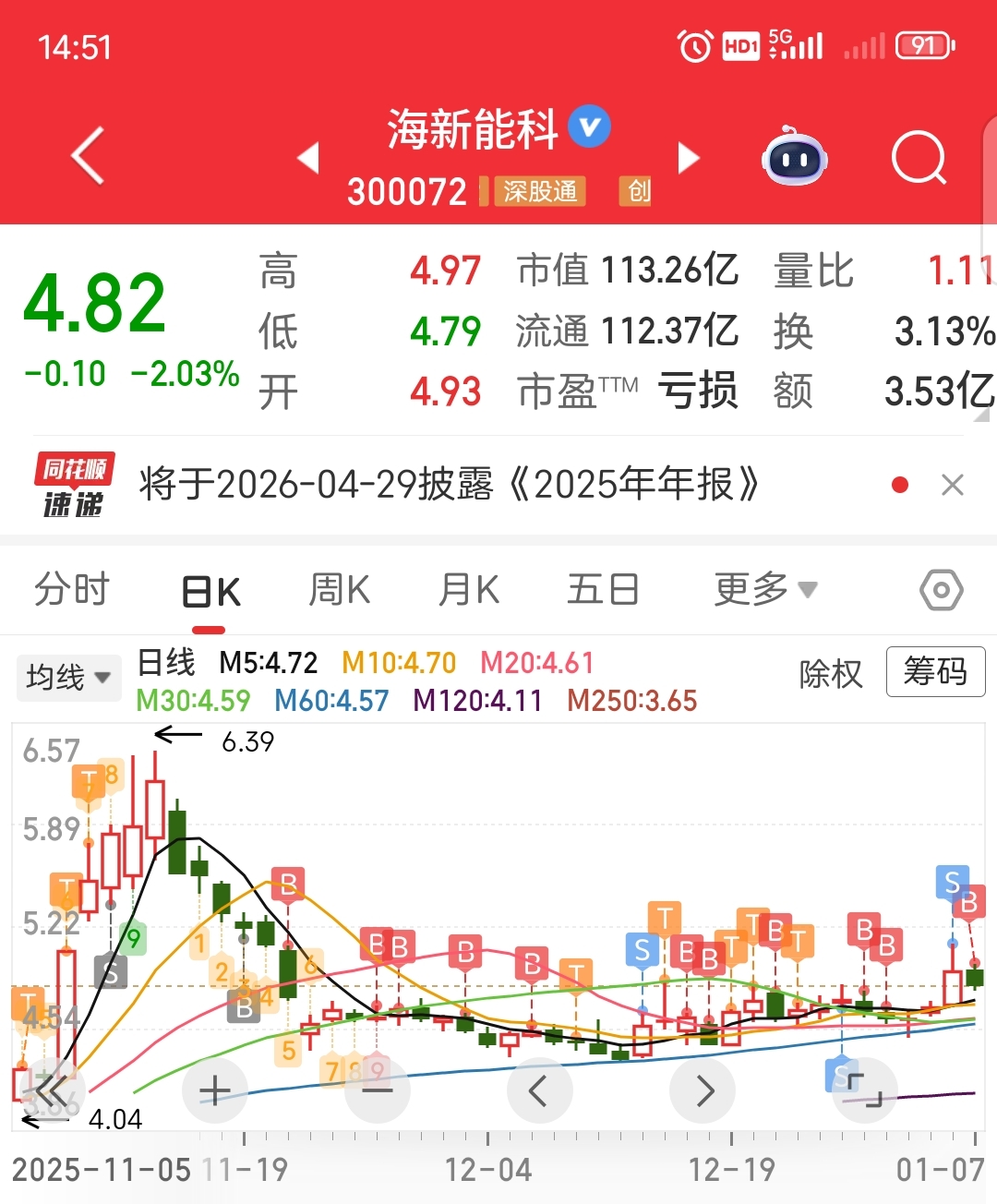 $海新能科(SZ300072)$ 红卖绿买,理论上明天不会再给低价买入的机会了