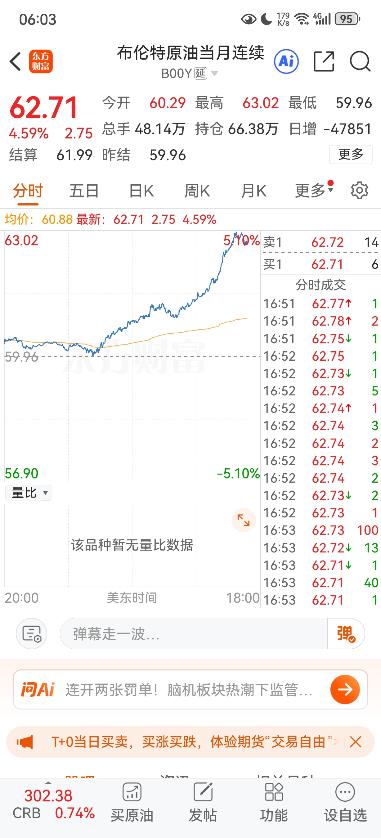 $海新能科(SZ300072)$ 布伦特原油今晚涨疯了,是否利好300072