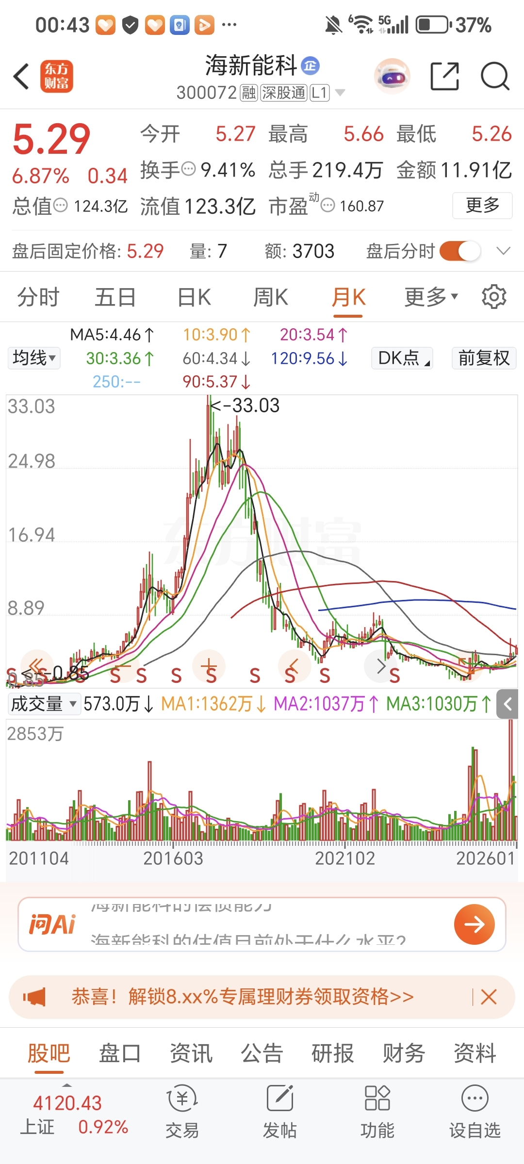 $海新能科(SZ300072)$ 你还觉得它很高吗?