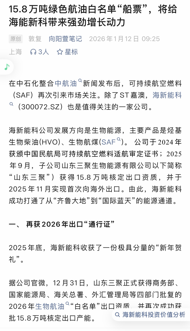 $海新能科(SZ300072)$