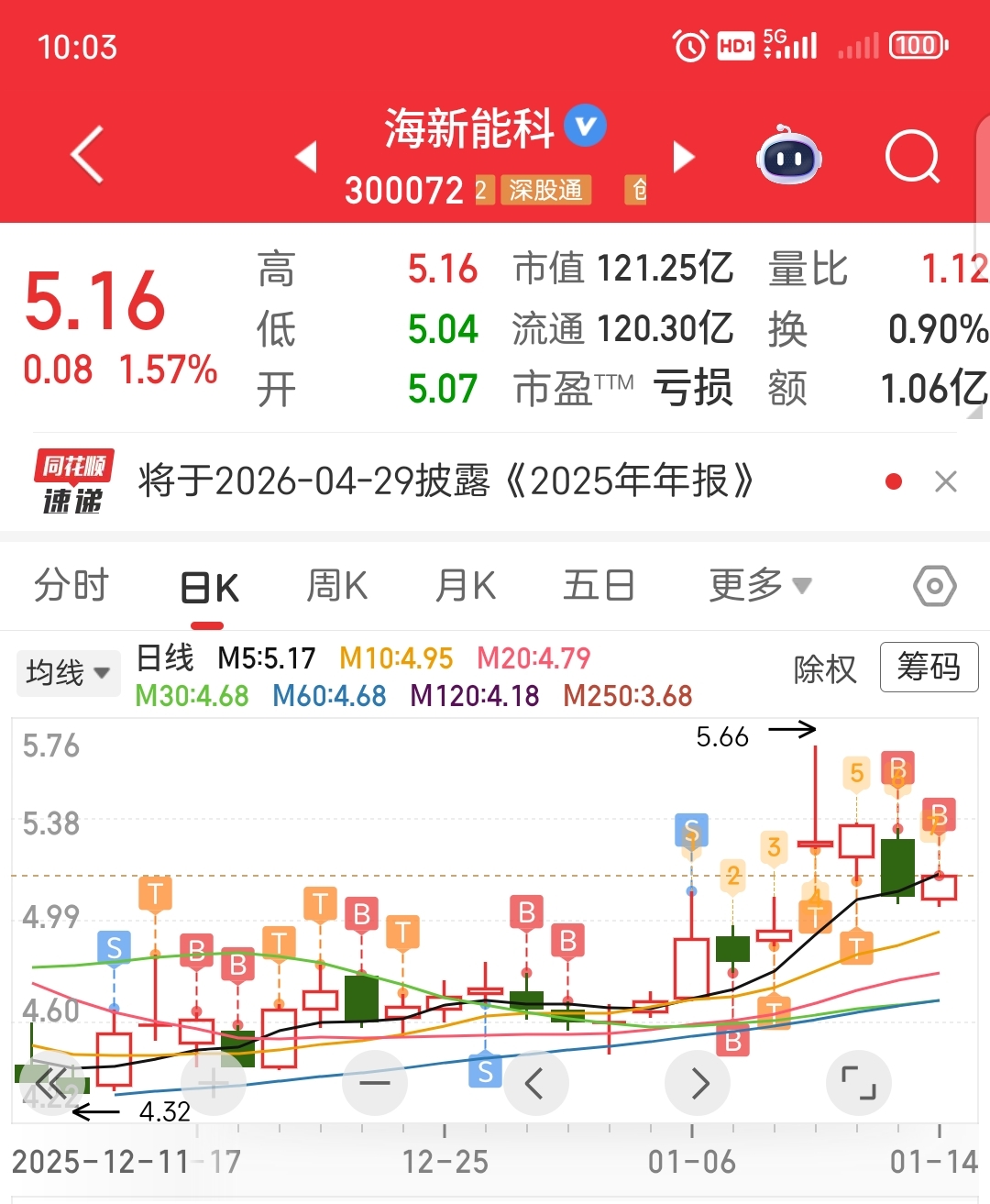 $海新能科(SZ300072)$ 持仓总成本4元以下,没底仓的谨慎哦!切莫追高