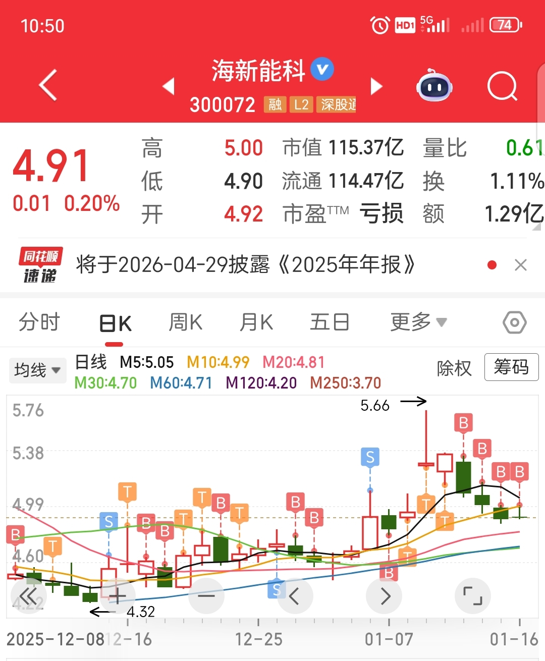 $海新能科(SZ300072)$ 四连买希望今天有机会卖出一次