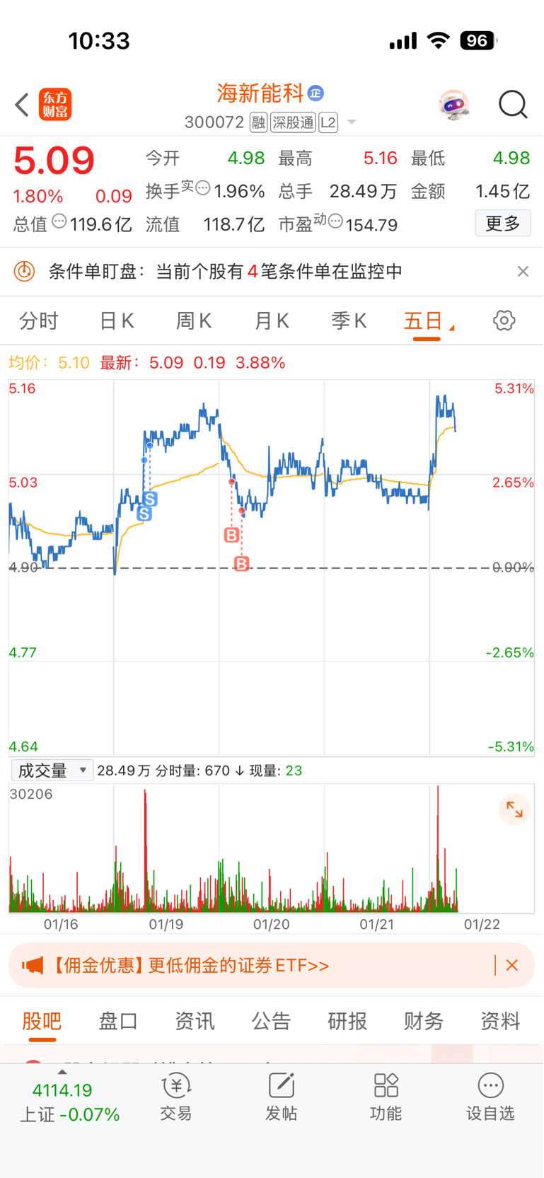 $海新能科(SZ300072)$ 不出预报坚决不动