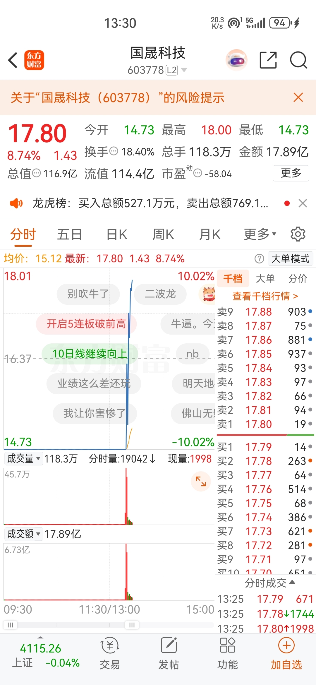 温馨提示: 1.根据《证券法》规定,禁止编造、传播虚假信息或者误导性信息,扰乱证券市场;2.用户在本社区发表的所有资料、言论等仅代表个人观点,与本网站立场无关,不对您构成任何投资建议。用户应基于自己的独立判断,自行决定证券投资并承担相应风险。《东方财富社区管理规定》