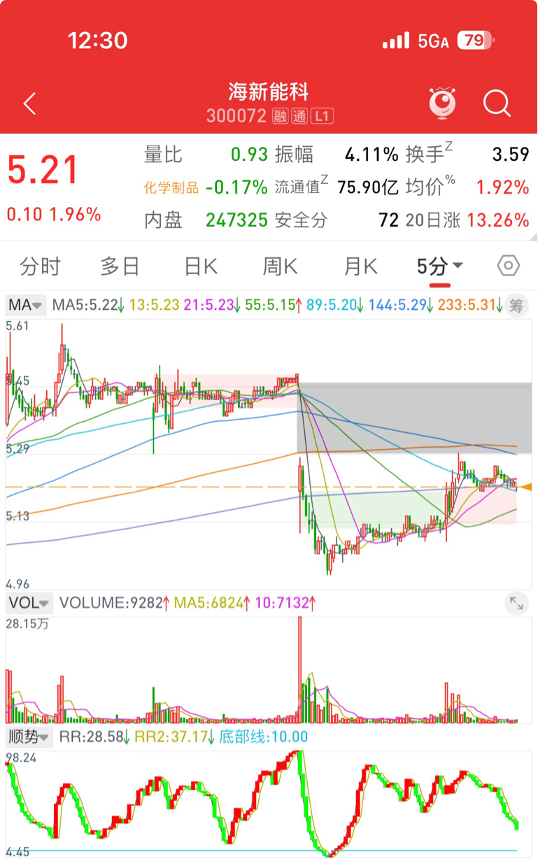$海新能科(SZ300072)$ 5分钟级别显示还要跌,大概率在5.15或者5.16左右