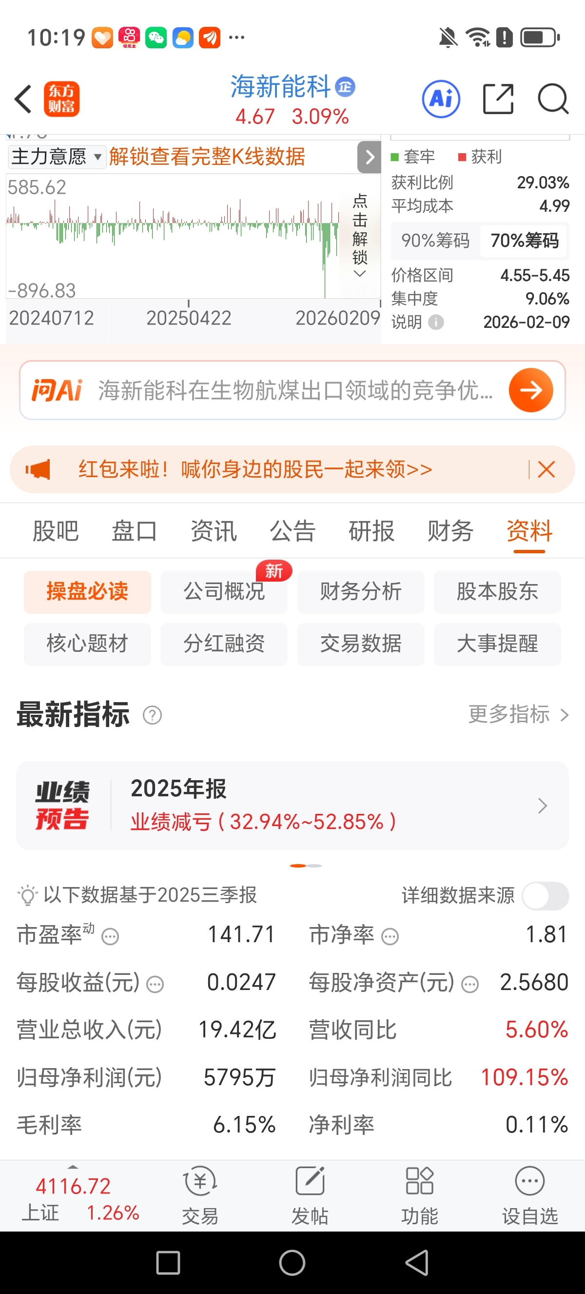 $海新能科(SZ300072)$ 也不是负的呀,大A天天的搞什么的。……