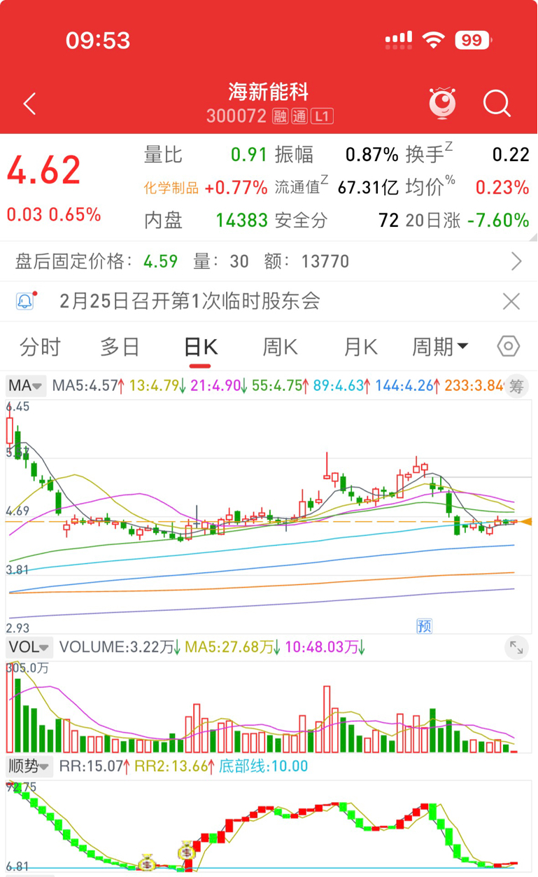 $海新能科(SZ300072)$ 这个走法就让他磨吧