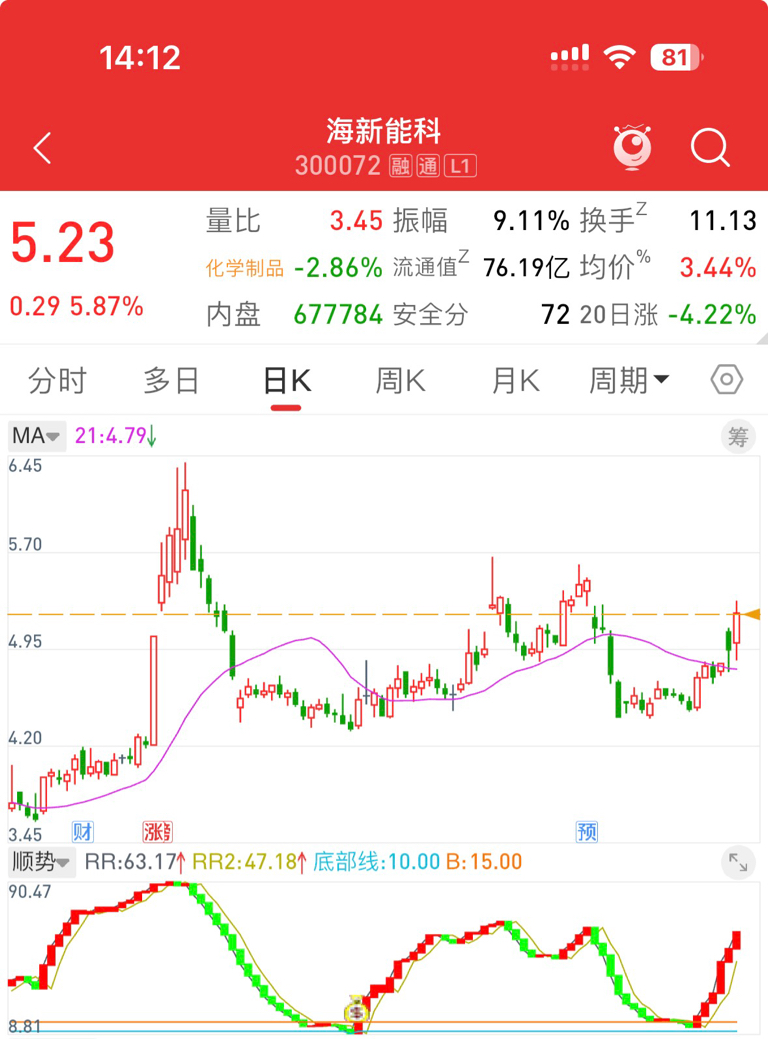 $海新能科(SZ300072)$ 指标完美对应