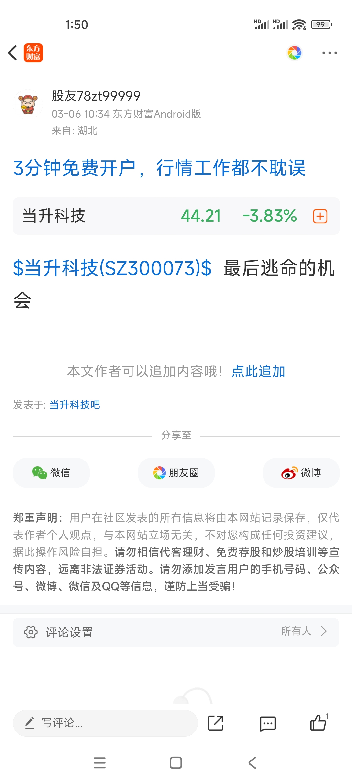 温馨提示: 1.根据《证券法》规定,禁止编造、传播虚假信息或者误导性信息,扰乱证券市场;2.用户在本社区发表的所有资料、言论等仅代表个人观点,与本网站立场无关,不对您构成任何投资建议。用户应基于自己的独立判断,自行决定证券投资并承担相应风险。《东方财富社区管理规定》