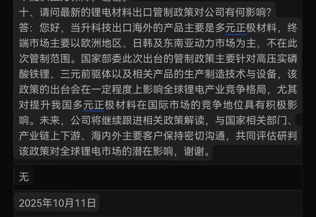 $当升科技(SZ300073)$ 公司的回复,看来昨天是跌错了,今天收复失地