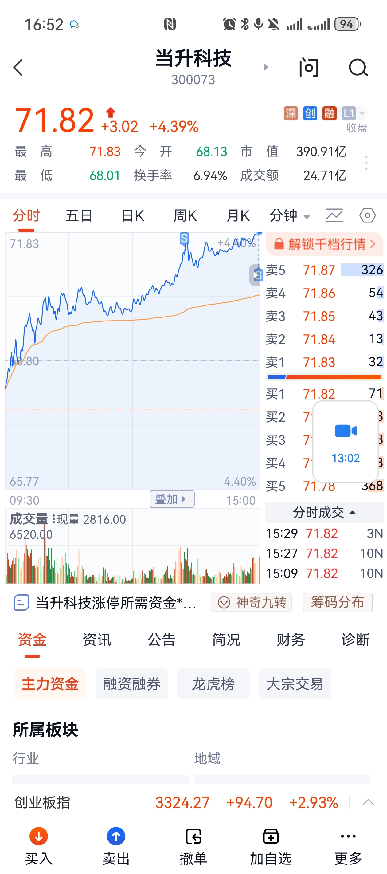 $当升科技(SZ300073)$ 完犊子,今天全卖了。希望明天不要开太高,给我机会进