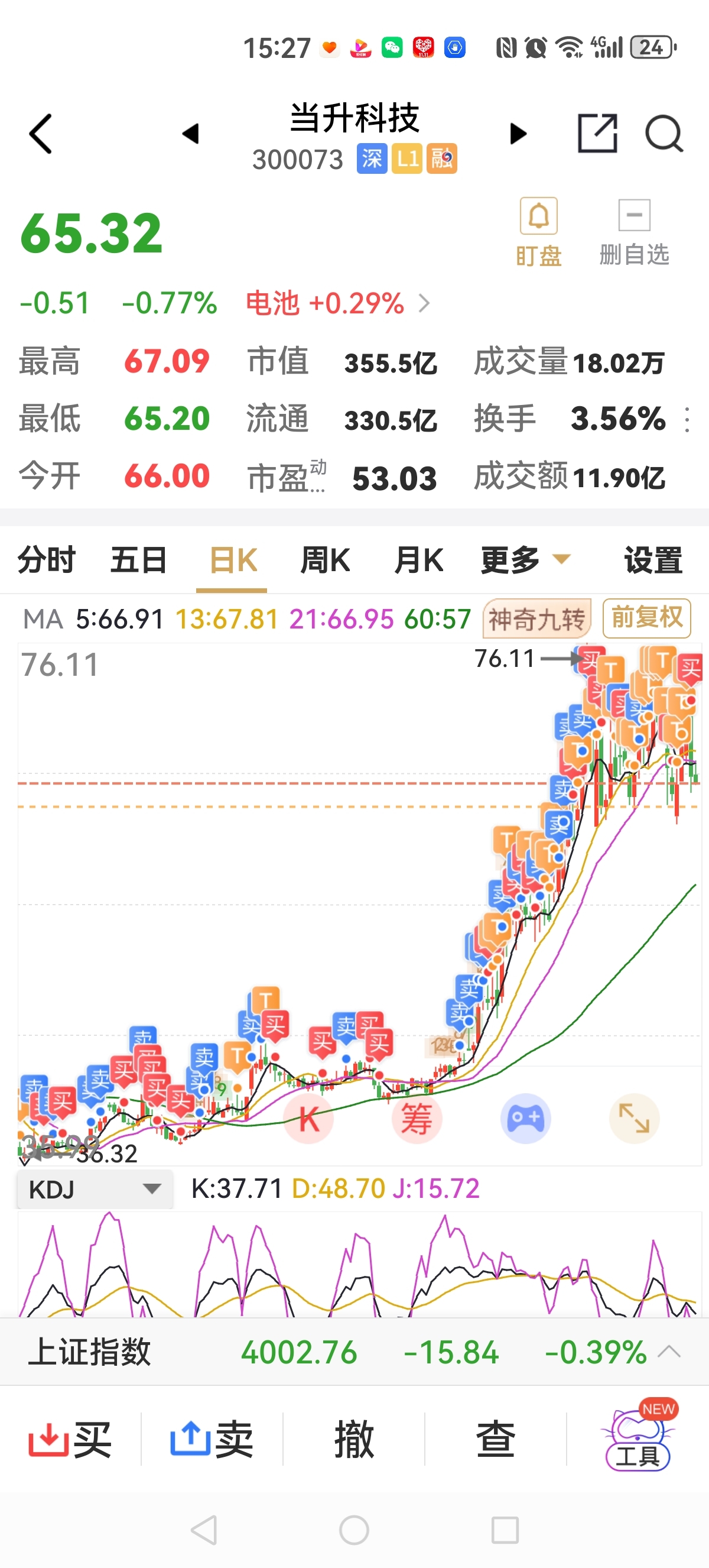 $当升科技(SZ300073)$ 104拿到27都没有下车,现在区区调整又算啥。