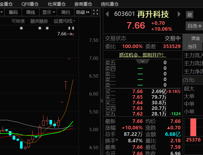 再生科技5个涨停了,当升走势有气无力,辛亏上周换了