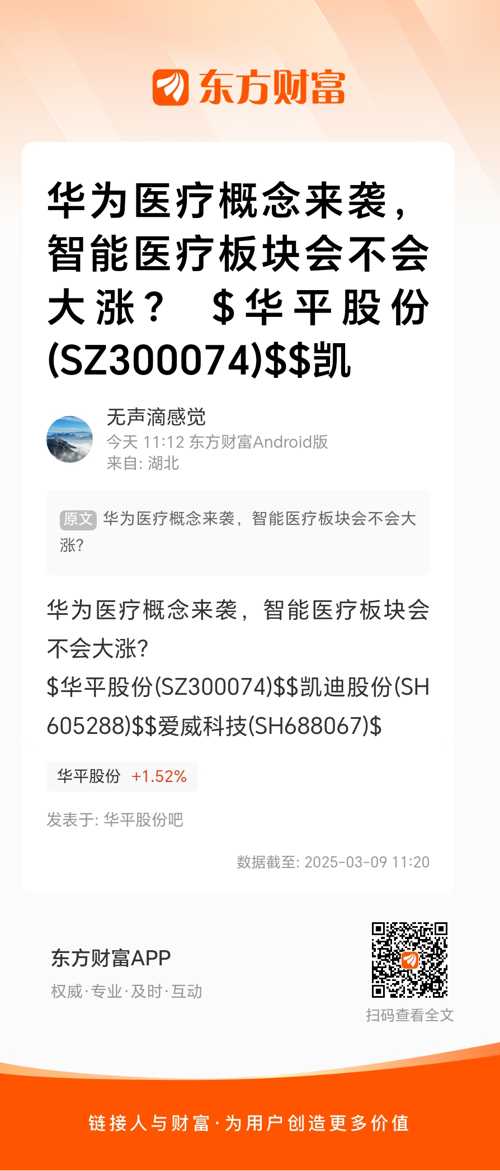 华为医疗概念来袭,智能医疗板块会不会大涨?