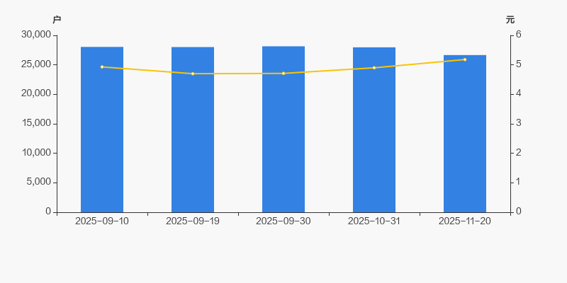 2025年9月10日至今,公司股东户数有所下降,区间跌幅为4.92%。2025年9月10日至2025年11月20日区间股价上涨5.07%。