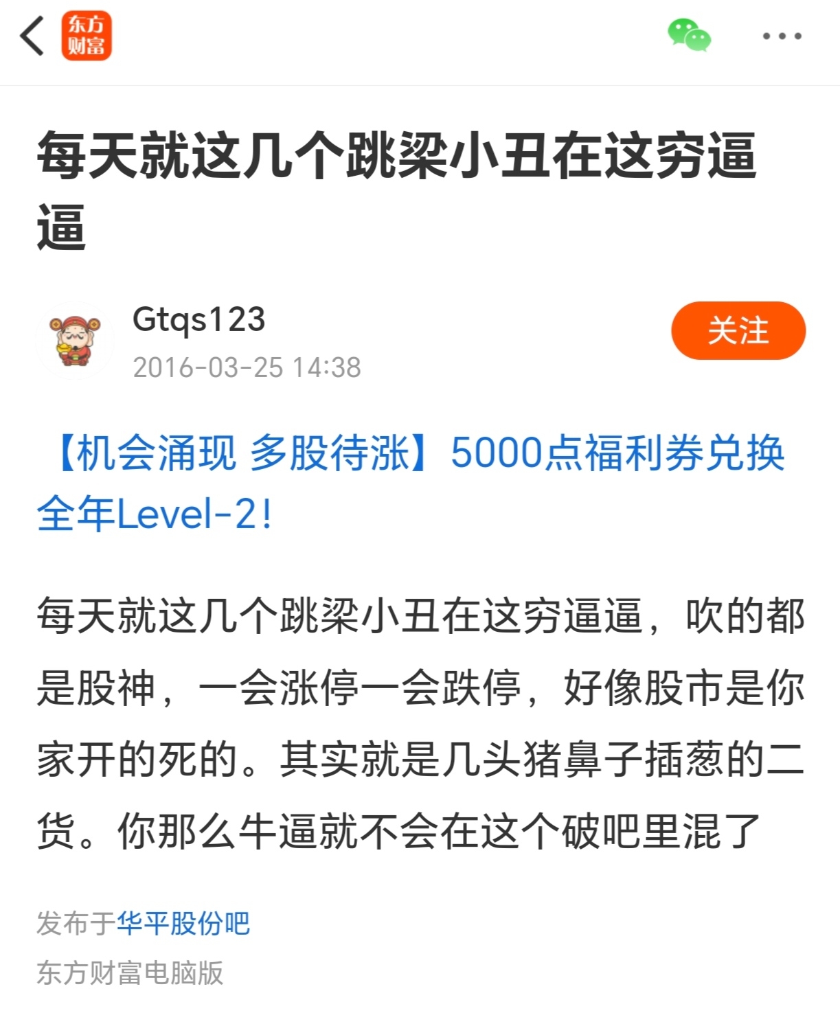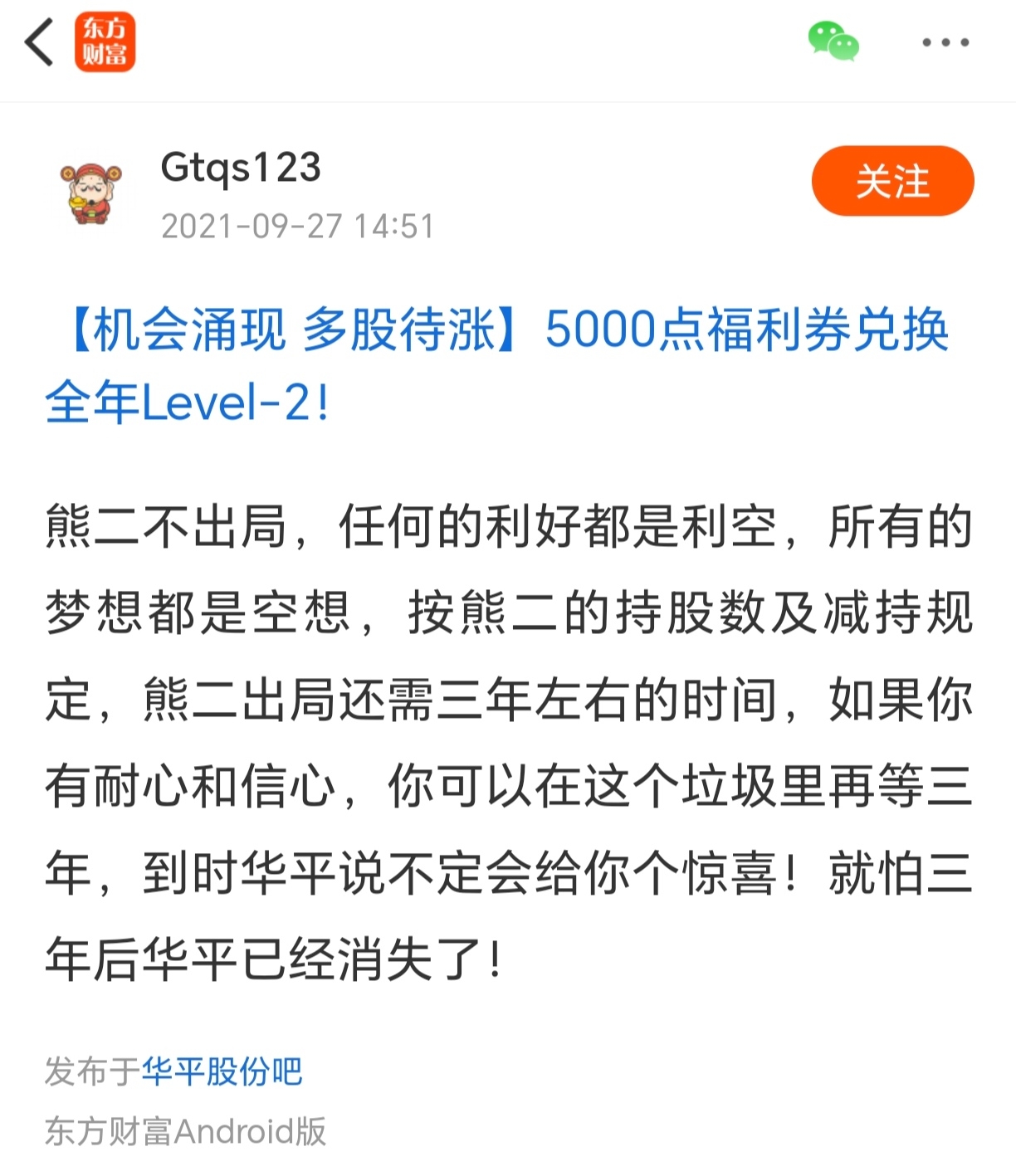 温馨提示: 1.根据《证券法》规定,禁止编造、传播虚假信息或者误导性信息,扰乱证券市场;2.用户在本社区发表的所有资料、言论等仅代表个人观点,与本网站立场无关,不对您构成任何投资建议。用户应基于自己的独立判断,自行决定证券投资并承担相应风险。《东方财富社区管理规定》