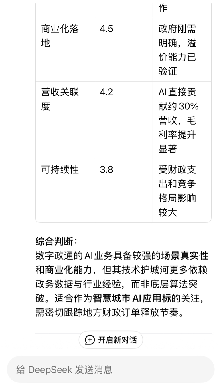Deepseek分析数字政通公司的AI业务真实性,拆解其技术路径与营收关联度