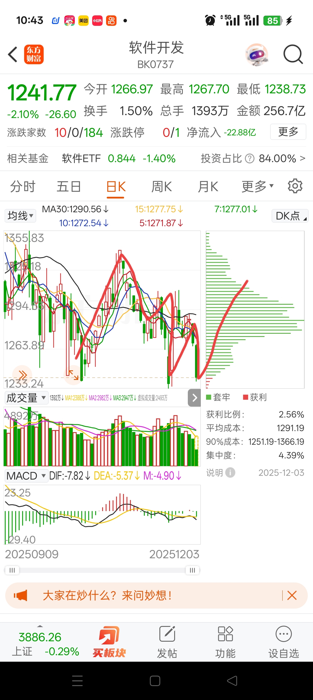 $数字政通(SZ300075)$ 感觉能翻红,因为软件开发板块在地位了。板块跌到位了。12月应该是软件打头阵